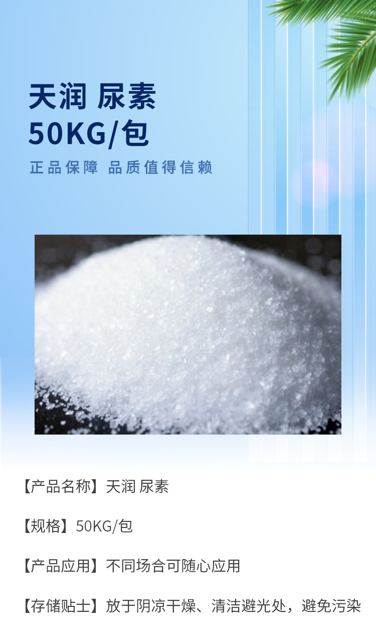 商品名称:天润 尿素 50KG/包 商品货号 : FDD004828 品牌 : 其它 产地 : -- 产品型号 : - 包装规格 : 50KG/包 等级 : - 生产许可证号 : - 含量 : -