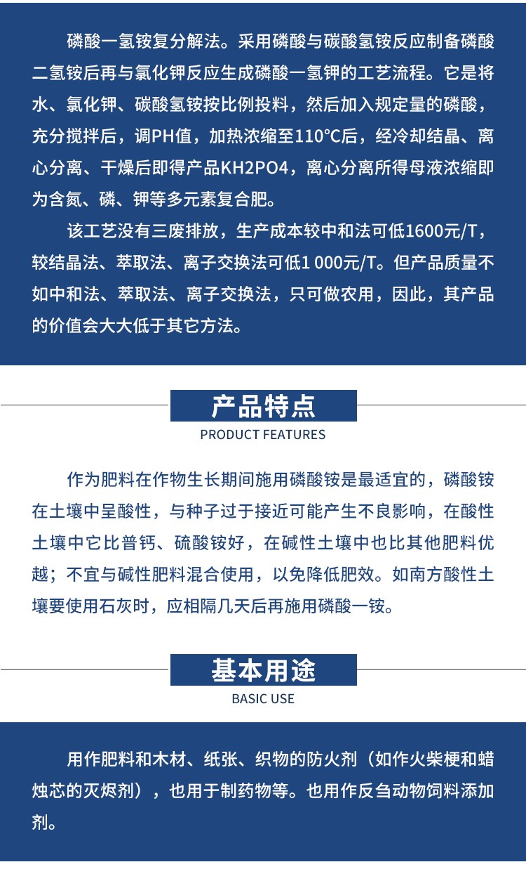 商品名称:云天化 42% 磷酸一铵 商品货号 : FDD005116 品牌 : 其它 产地 : -- 产品型号 : - 包装规格 : - 等级 : - 生产许可证号 : -