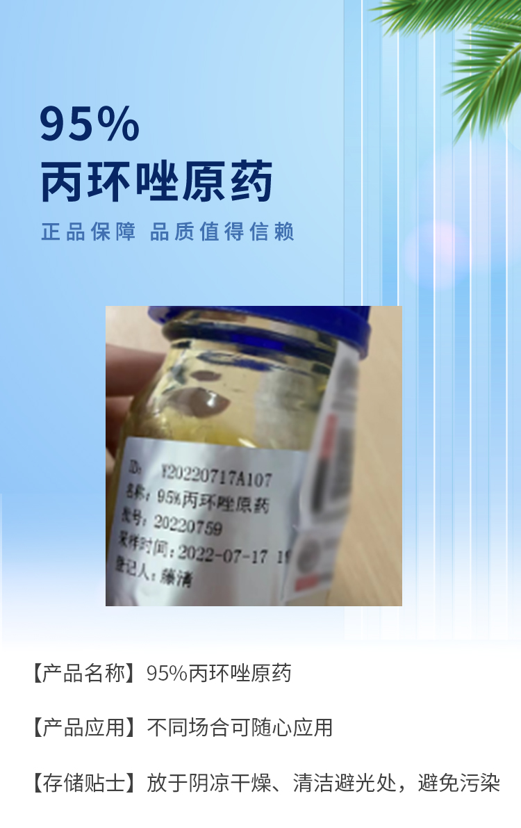 商品名称:95%丙环唑原药 商品货号 : FDD005275 品牌 : 其它 产地 : -- 产品型号 : - 包装规格 : - 等级 : - 生产许可证号 : -